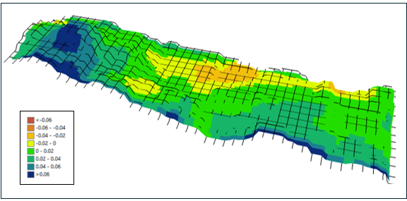 The resulting NDVI difference map shows a positive trend, with many areas in the field exhibiting stable or increased NDVI values (Blue color). These improvements indicate an encouraging early response to the new management practices implemented in 2024. Visual assessment suggests that approximately 90% of the field area (green to blue regions) showed improved NDVI, reflecting enhanced crop vigor and canopy development. Some zones with slight declines may reflect field variability or localized conditions.