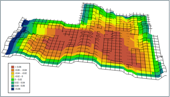 The resulting NDVI difference map highlights areas of both stability and improvement, with a substantial portion approximately 45% of the field showing increased NDVI values (green to blue regions). These areas suggest a positive early response to the newly adopted management practices. Other regions with minimal or slightly reduced NDVI values may reflect natural field variability or transitional responses during the first year of implementation.