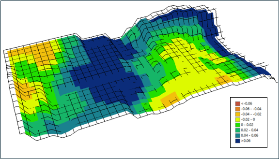 To ensure accuracy, data were collected at similar growth stages for the same crop, accounting for crop rotation. The difference was calculated by subtracting 2022 NDVI values (pre practice implementation) from 2024 values (post practice implementation) on grid-by-grid basis across the field.