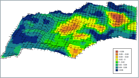 The resulting NDVI difference map shows a positive trend, with many areas in the field exhibiting stable or increased NDVI values (Blue color). These improvements indicate an encouraging early response to the new management practices implemented in 2024. Visual assessment suggests that approximately 65% of the field area (green to blue regions) showed improved NDVI, reflecting enhanced crop vigor and canopy development. Some zones with slight declines may reflect field variability or localized conditions.